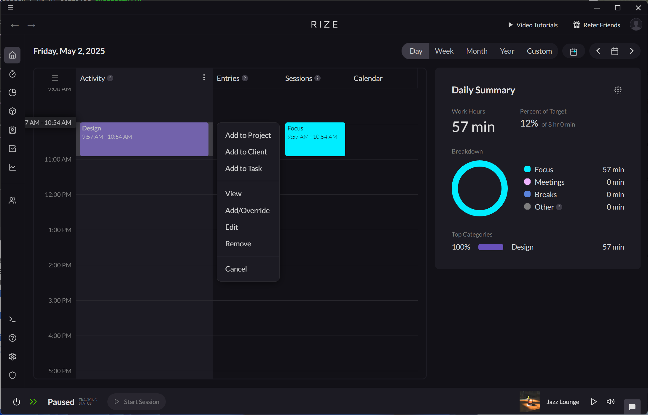 Rize offers multiple ways to assign time to your projects, simplifying how you track work for specific projects.